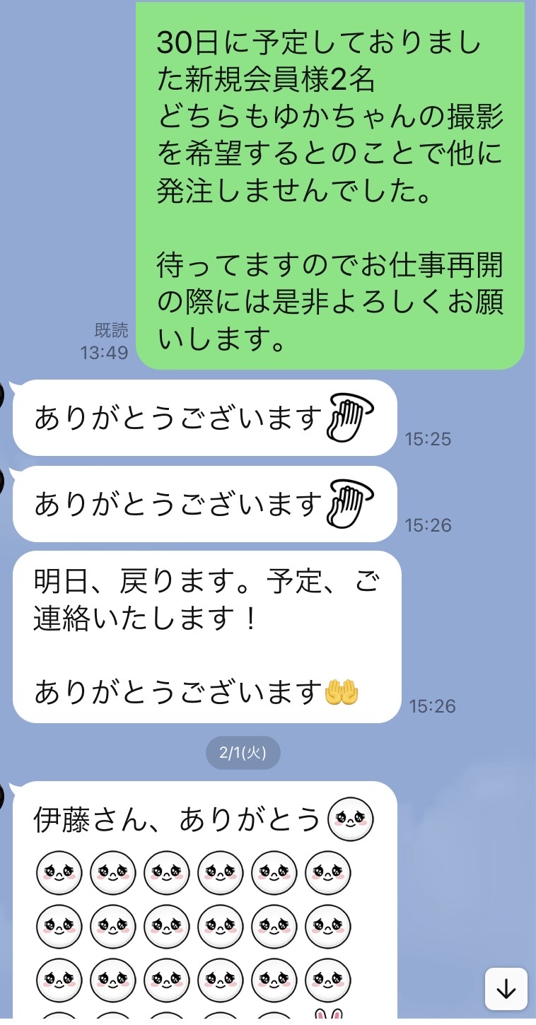 この後の日程調整中も「伊藤さんありがとう」の連発。