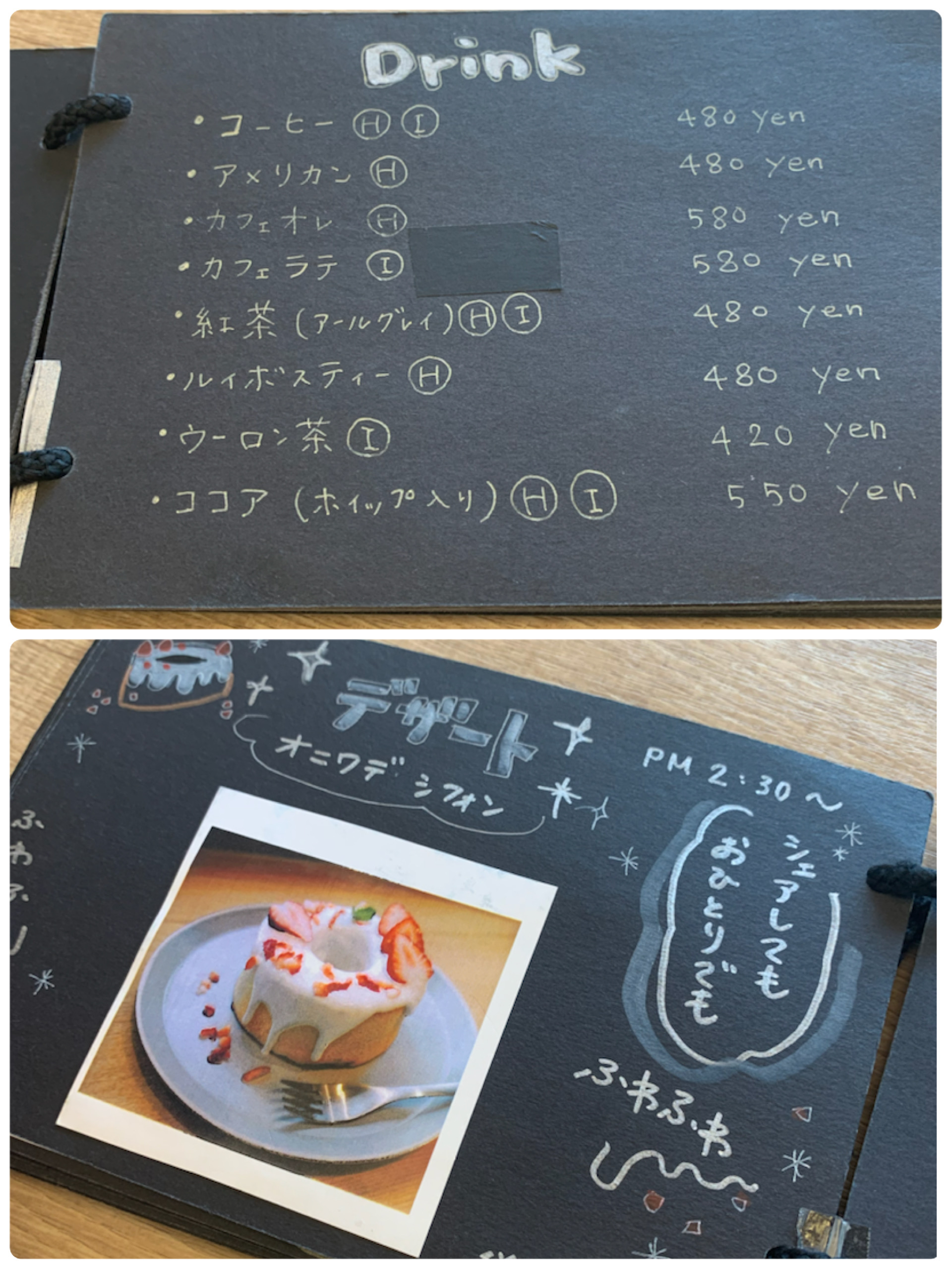 なら種類別に頼む?って思ってたところに隣の席にシフォンケーキが置かれた。